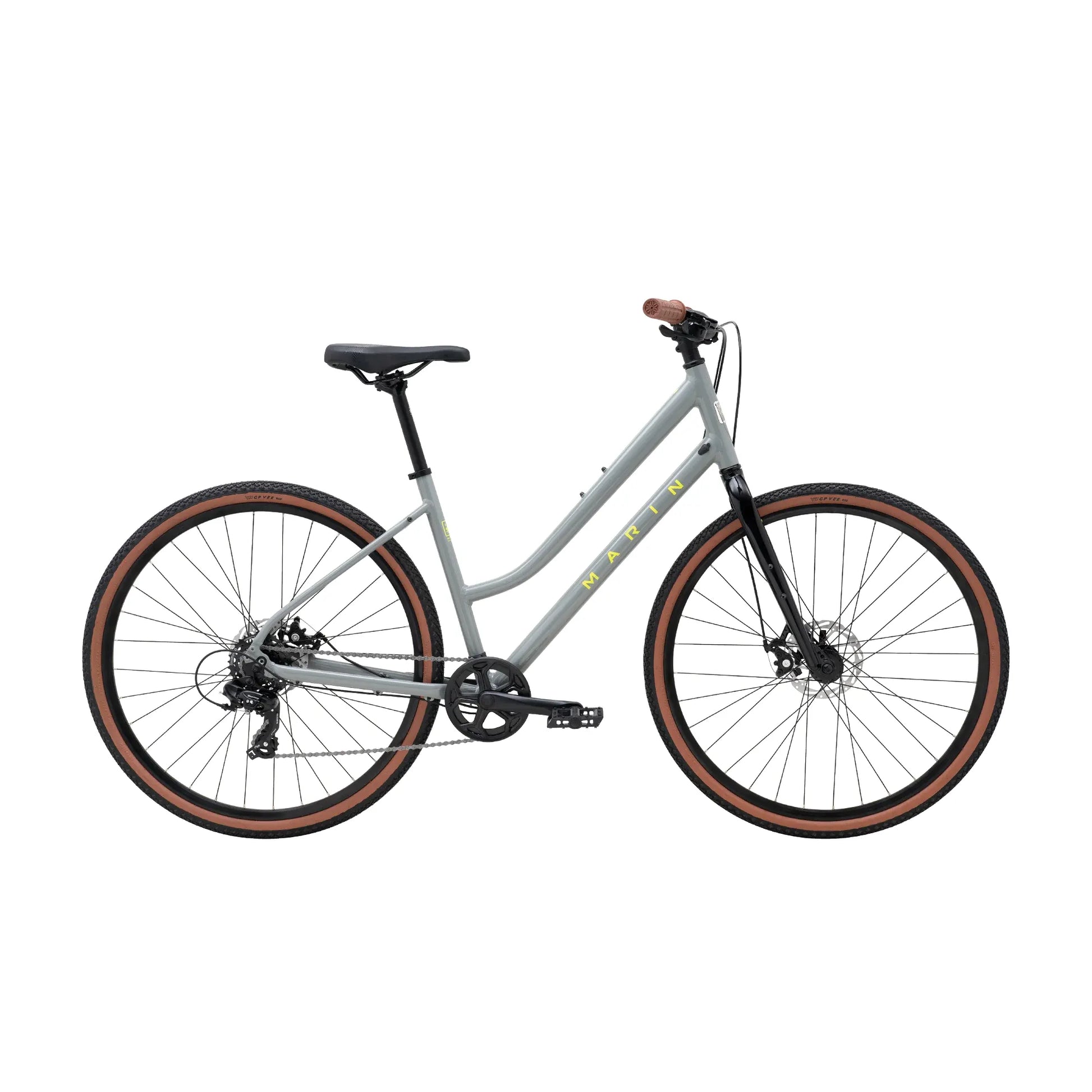 Our Series 1 aluminum frame is lightweight and responsive, and comes decked out with plenty of rack and fender mounts to suit your setup. There’s a Shimano 7-speed drivetrain, Vee Tire tires, Tektro mechanical disc brakes and plenty of reliable Marin components.