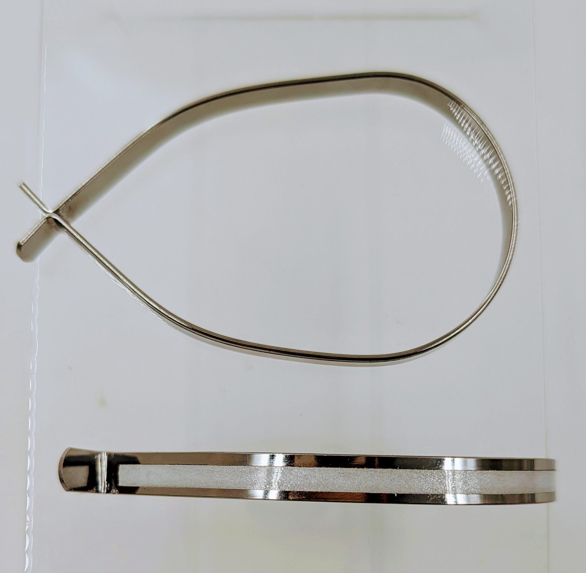 Metal pant clips with reflective band. Protects your pants from getting caught in moving parts. Helps you stay visible on the dark streets.