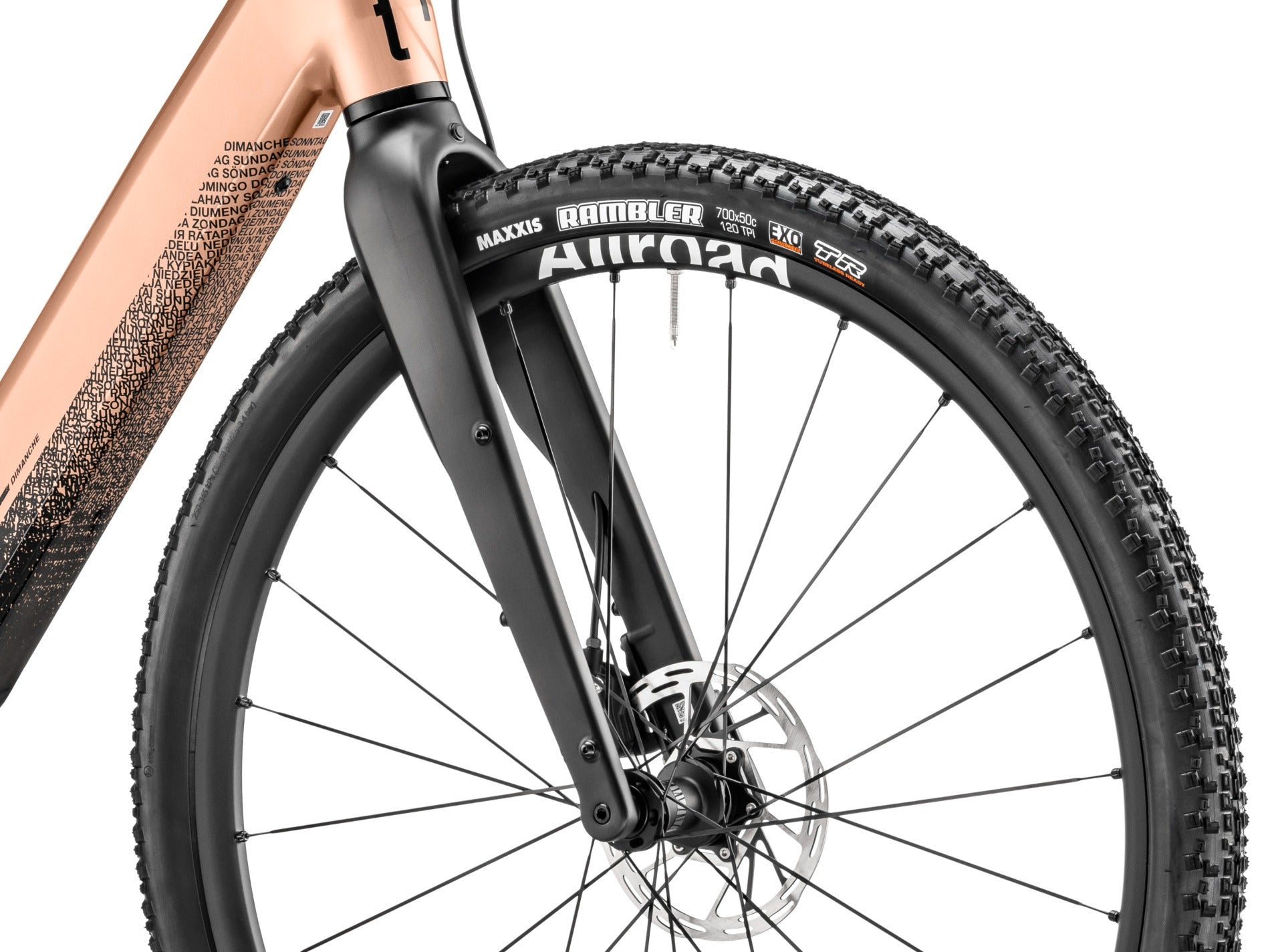 | Front tyre | Maxxis, Rambler, 700x50C, 120TPI |