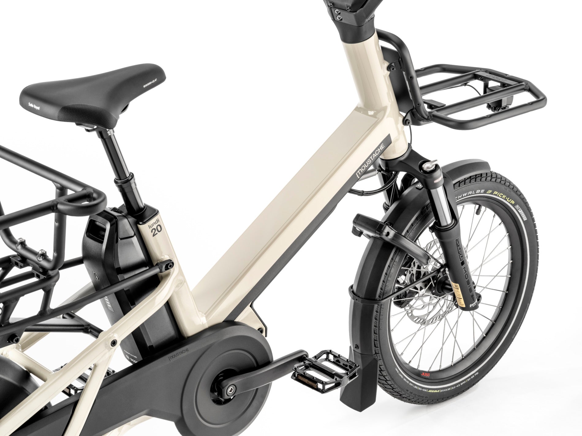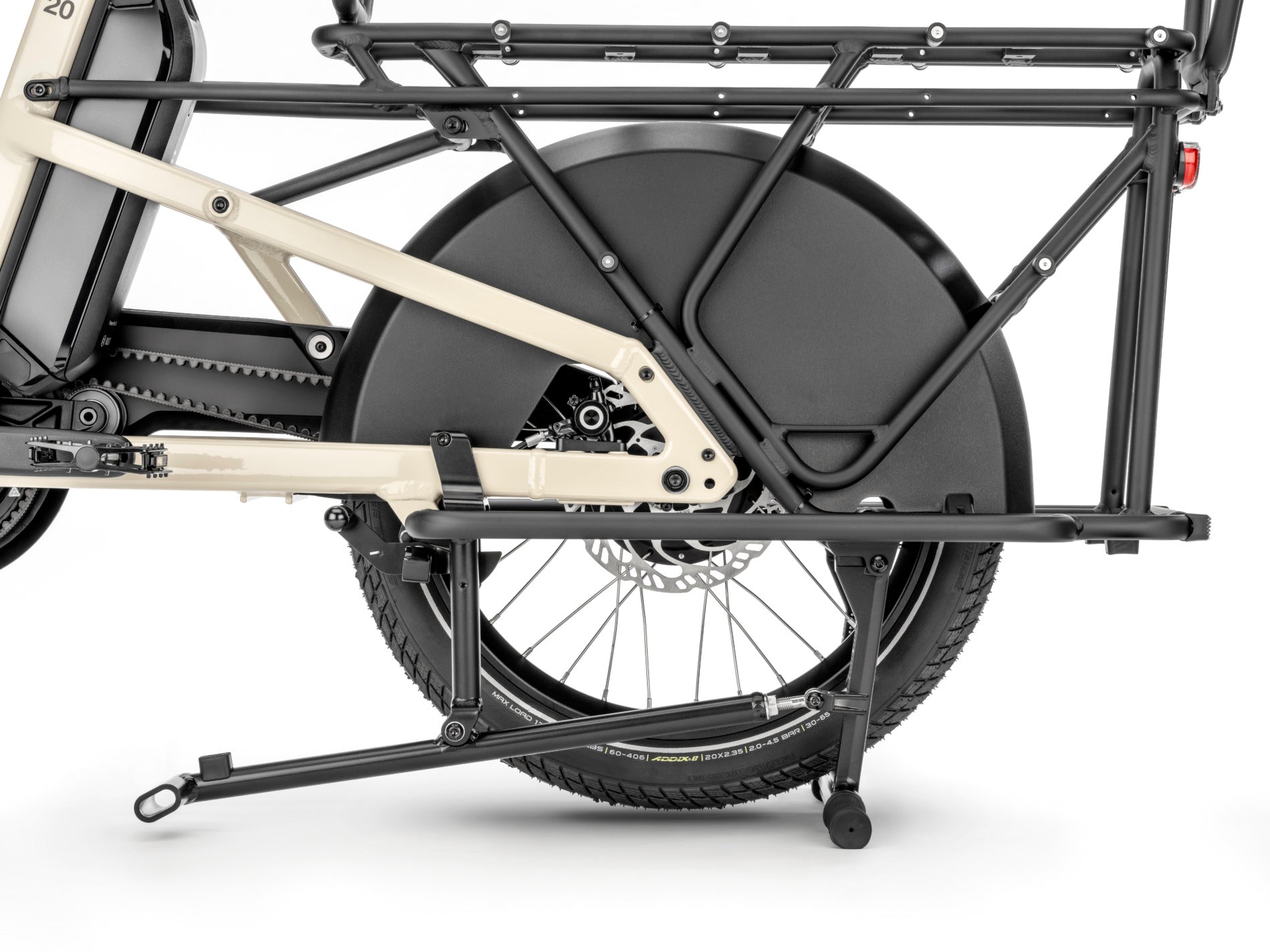 An evolution of the original Lundi 20, Cargo 3 retains all its key strengths while offering even more comfort and ease of use every day. Its new lowered frame is super easy to step over. The reinforced front suspension, specially designed for cargo use, keeps you comfortable even on bumpy roads... And the brand-new kickstand, still positioned at the rear for maximum stability, is a breeze to activate. As for the upgraded Cues drivetrain, it ensures smooth, reliable shifting over time.